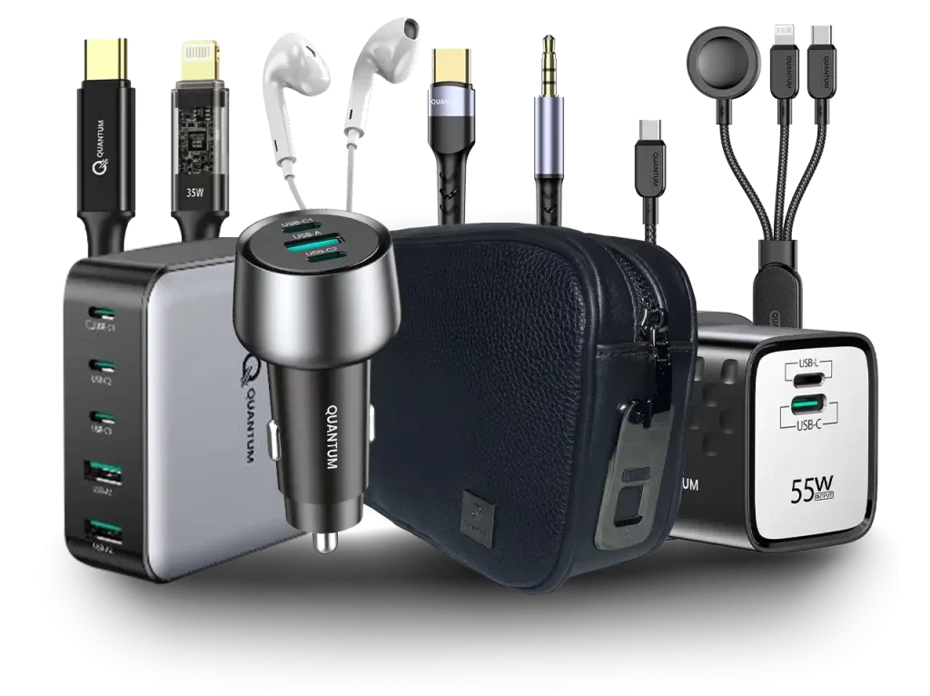 Discover Qantum’s premium range of mobile essentials from fast chargers and durable cables to fingerprint-secured handbags and car-friendly accessories. Built for performance, crafted for your lifestyle.